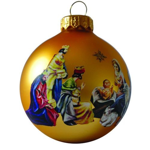 Matt arany gömb Betlehemi mintával. Üvegből készült belül valódi ezüsttel kezelt karácsonyfadísz.