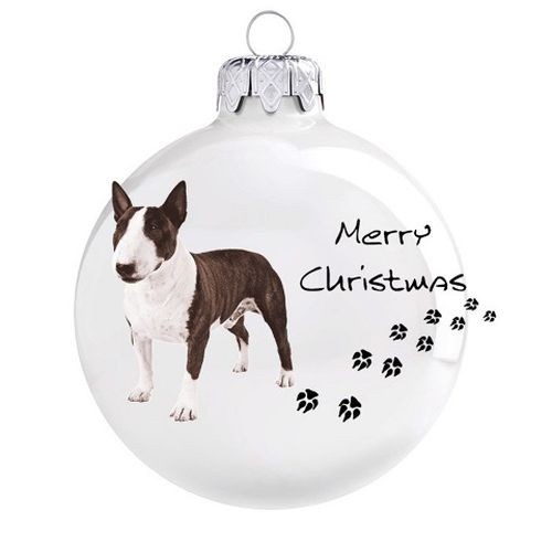Porcelán hatású üveg fehér dísz "Bullterrier" mintával. Üveg karácsonyfadíszeinket nagy gondossággal, kézzel készítjük, így biztosítva a magas minőséget és az egyedülálló mintázatot.
