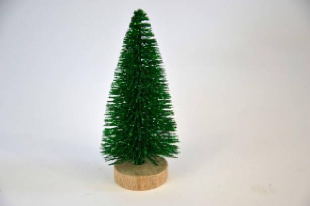 fenyőfa zöld glitteres fa talppal 10 cm 3 db/cs