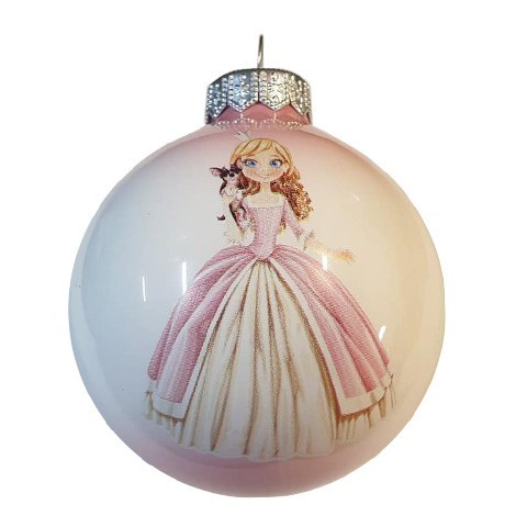 Opál rózsaszín fehér üvegkarácsonyfadísz szépséges királylány mintával. Üveg karácsonyfadíszeinket nagy gondossággal, kézzel készítjük, így biztosítva a magas minőséget és az egyedülálló mintázatot.