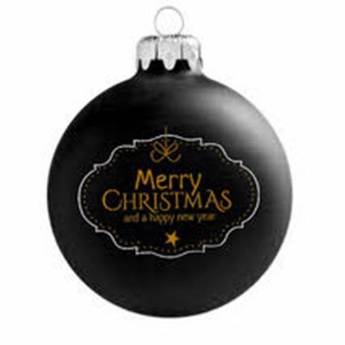 Matt fekete dísz "Merry Christmas" mintával, 8 cm. Üveg karácsonyfadíszeinket nagy gondossággal, kézzel készítjük, így biztosítva a magas minőséget és az egyedülálló mintázatot.
