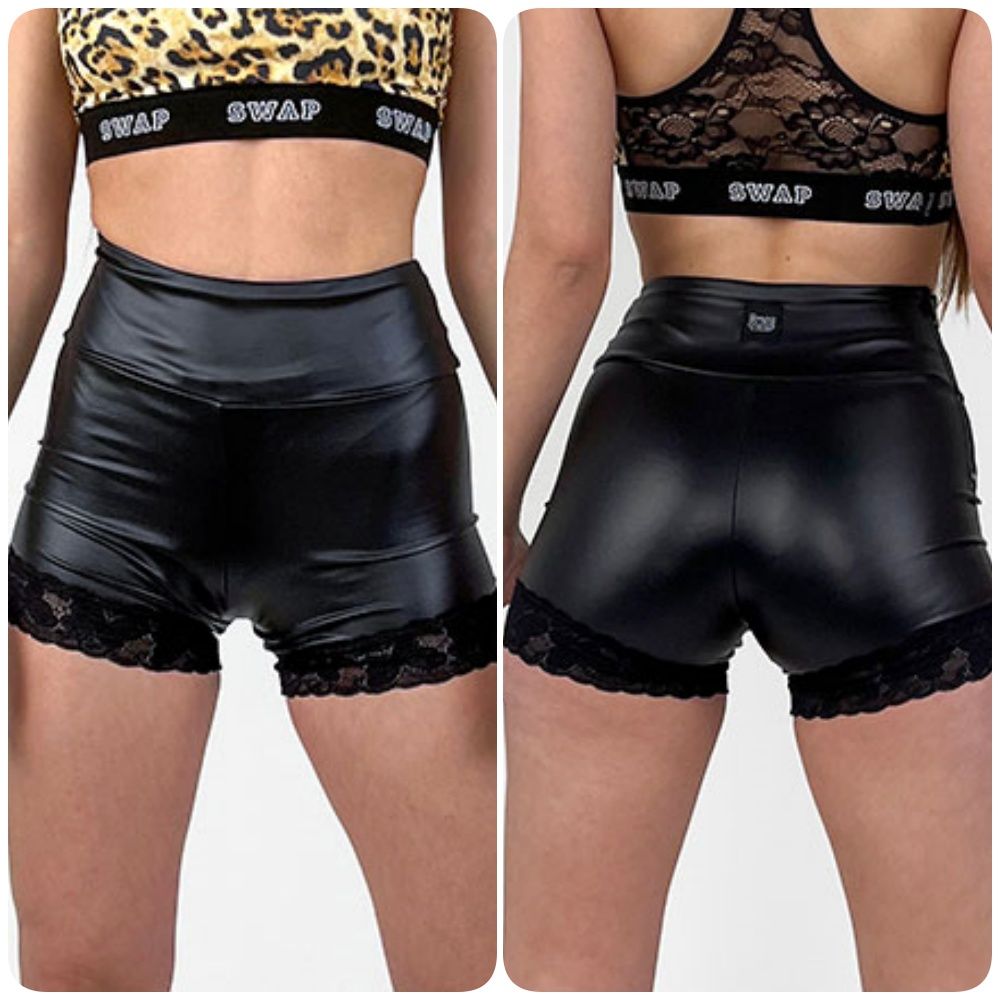 SWAP bőrhatású elasztikus csipkés short, magasított derékkal
