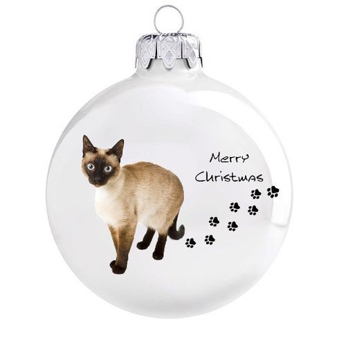 Porcelán fehér dísz sziámi cica mintával és "Merry Christmas" felirattal. 8 cm-es üvegből készült belül valódi ezüsttel kezelt karácsonyfadísz. Üveg karácsonyfadíszeinket nagy gondossággal, kézzel készítjük, így biztosítva a magas minőséget és az egyedülálló mintázatot.