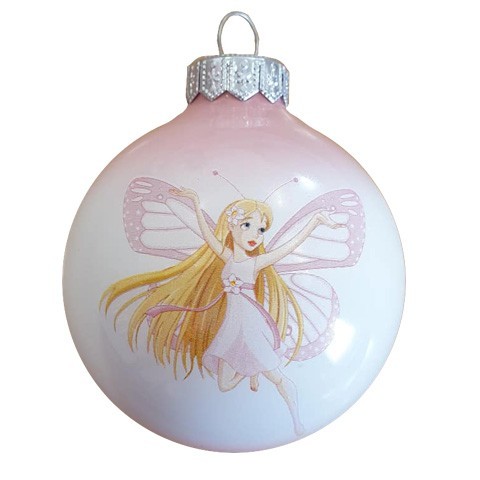 Opál rózsaszín fehér üvegkarácsonyfadísz szépséges tündérlány mintával.Üveg karácsonyfadíszeinket nagy gondossággal, kézzel készítjük, így biztosítva a magas minőséget és az egyedülálló mintázatot.